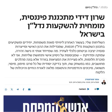 הוא לא מדבר ב'נדלניסטית' ולא צריך תואר בכלכלה כדי להבין אותו.